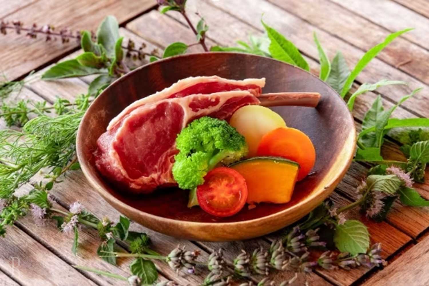 【愛犬用BBQ】骨付きラムチョップ&季節のオーガニック温野菜プレート